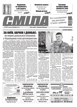Черговий номер газети “СМІЛА” за 15 квітня уже в продажу: на базарах – Центральному і Шевченківському, біля м-ну Сріблянка (м-р машбуд)