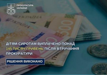 Суд підтримав позицію прокуратури, визнав бездіяльність незаконною та зобов’язав виплатити кошти. Загальна сума допомоги становить понад 145 тисяч гривень. Наразі рішення суду виконано, кошти дітям виплачено, повідомили в обласній прокуратурі.