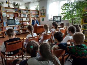 Віктор Овчаренко – активний громадський діяч, волонтер, меценат, учасник Революції Гідності завітав на зустріч з активними відвідувачами дитячої бібліотеки, учнями 4-А класу НВК гімназії ім. В.Т. Сенатора ( класний керівник Валентина Остапенко).