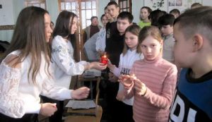 Гімназисти розпочали День Героїв Небесної Сотні з покладання квітів біля меморіального знаку. Продовжили уроком пам’яті «Зима, що нас змінила», під час якого вшанували подвиг учасників Революції Гідності.
