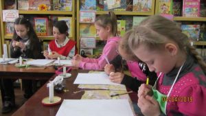 Пані Вікторія розповіла дітям про писанкарство, ознайомила із значенням різних символів писанок та християнських традицій, пов’язаних з нею. Дівчатка, засвоївши основні моменти техніки розпису, завзято взялися за писачки. Через деякий час у руках кожної з юних майстринь з`явилося справжнє диво – власна великодня писанка.