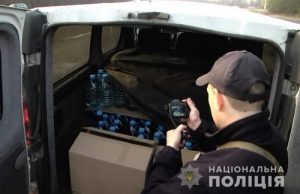 Під час огляду у вантажному відсіку поліцейські виявили 300 полімерних пляшок, ємкістю 5 літрів кожна, заповнені рідиною з різким запахом спирту. Чітко пояснити походження продукції та надати документів на неї водій автомобіля не зміг.