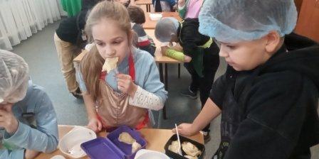 Школярі із задоволенням та цікавістю занурились у кулінарний процес: замішували тісто, розкатували коржі, ліпили. Не лише вчилися основам кулінарної майстерності, а й попрацювали у команді, розвивали дрібну моторику та дізналися більше цікавих фактів про українські традиції.