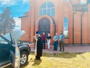 Перед відправленням позашляховик освятив військовий капелан, протоієрей, настоятель храму Різдва Святого Івана Хрестителя УПЦ Михайло Шевчук.