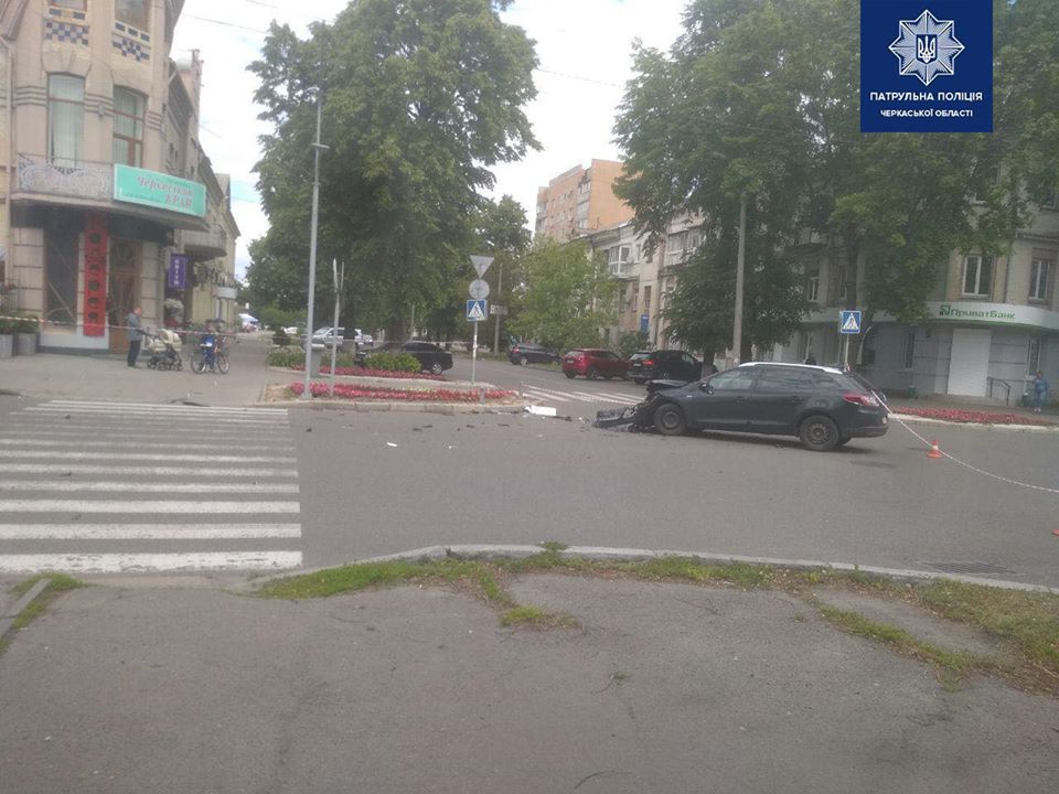 У неділю на перехресті вулиць Хрещатик та Смілянська у Черкасах сталася ДТП.Водій Renault не надав перевагу в русі та скоїв зіткнення з автомобілем Volkswagen, який рухався головною дорогою.